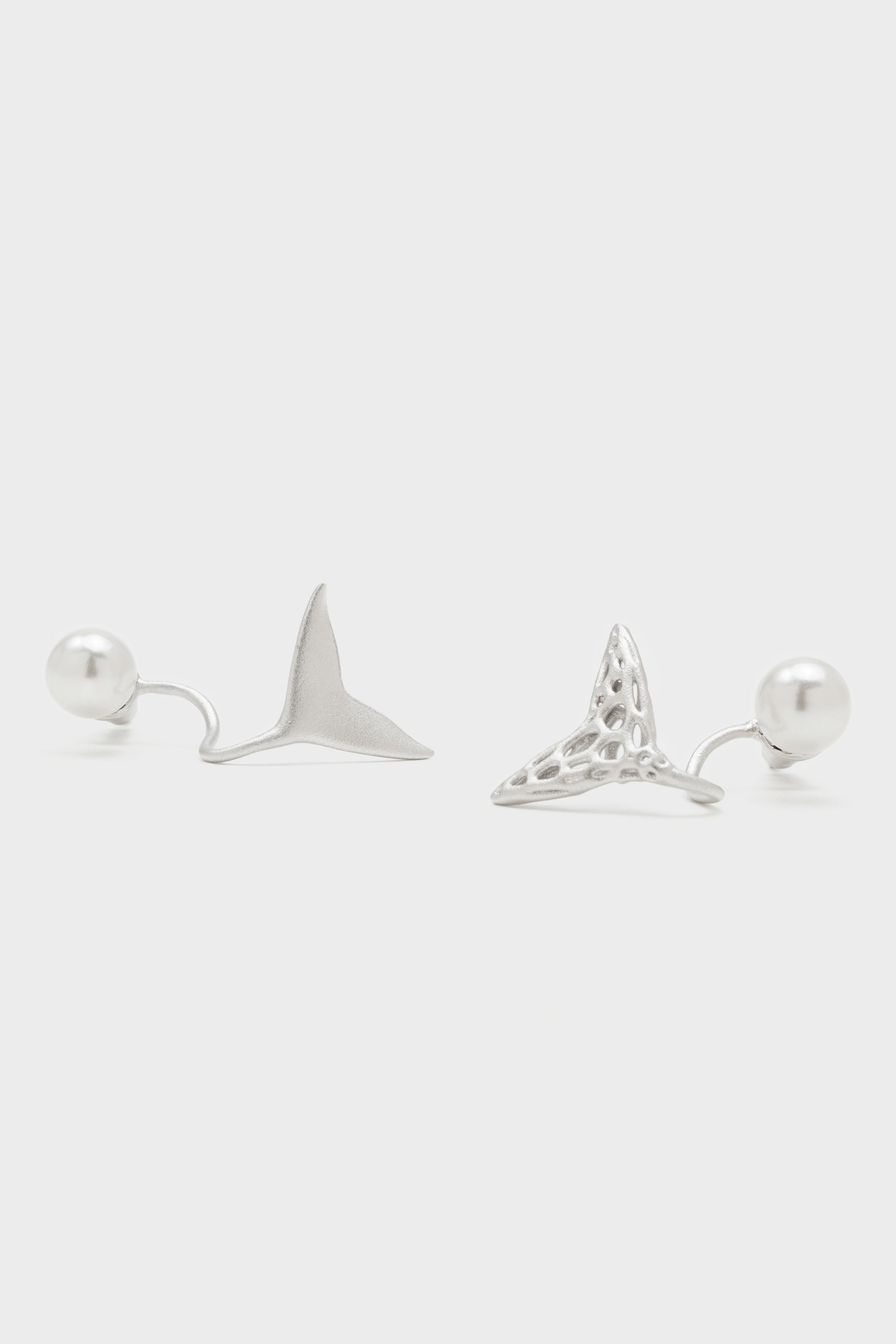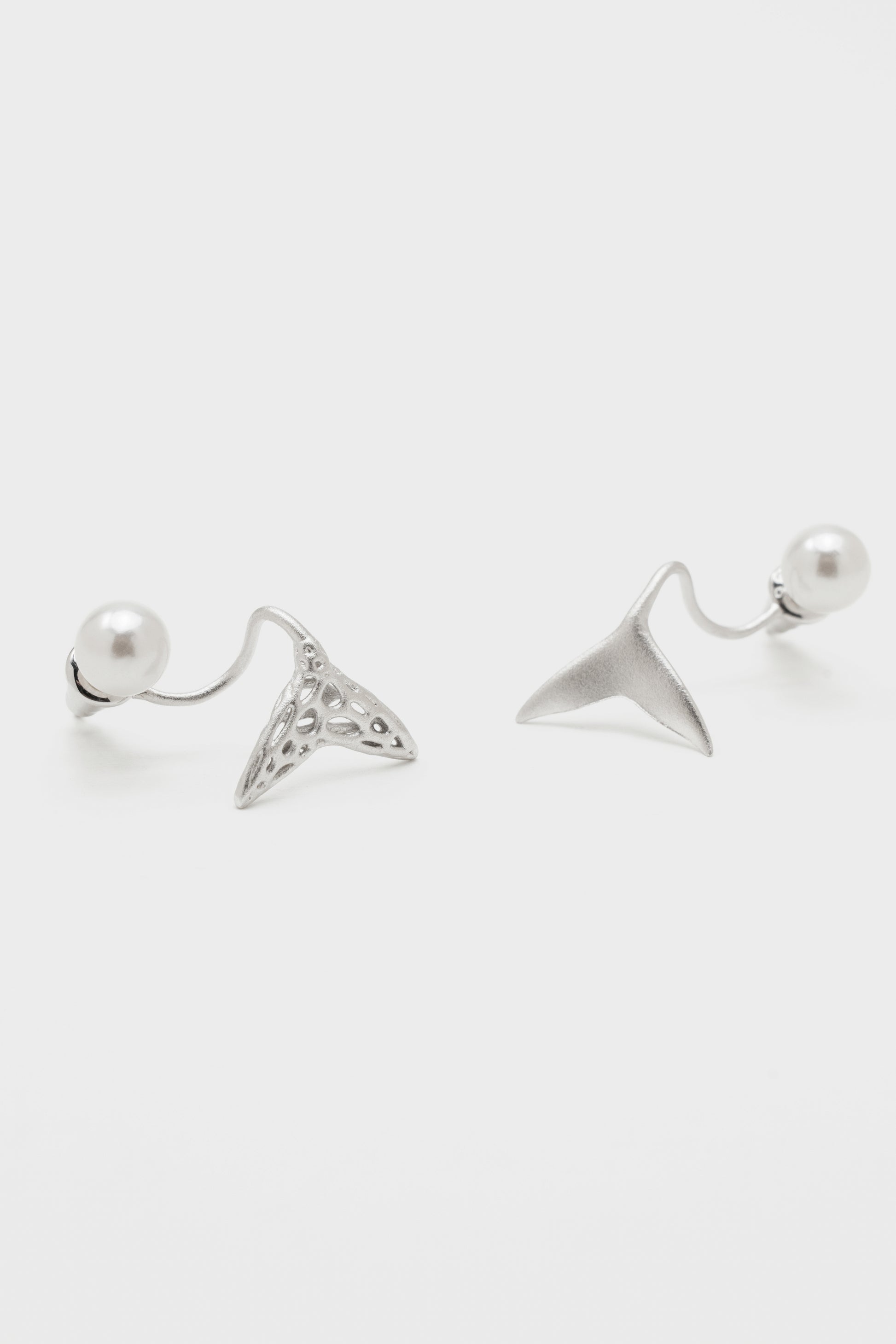 These elegant fish tail earrings symbolize the eternal cycle of life and decay within the marine world, beautifully capturing the balance between vitality and fragility. Crafted from premium sterling silver and plated with 18K white gold, these earrings feature an AB design—one side representing life, and the other side symbolizing decay—reflecting the delicate interplay of growth and dissolution that occurs in nature.