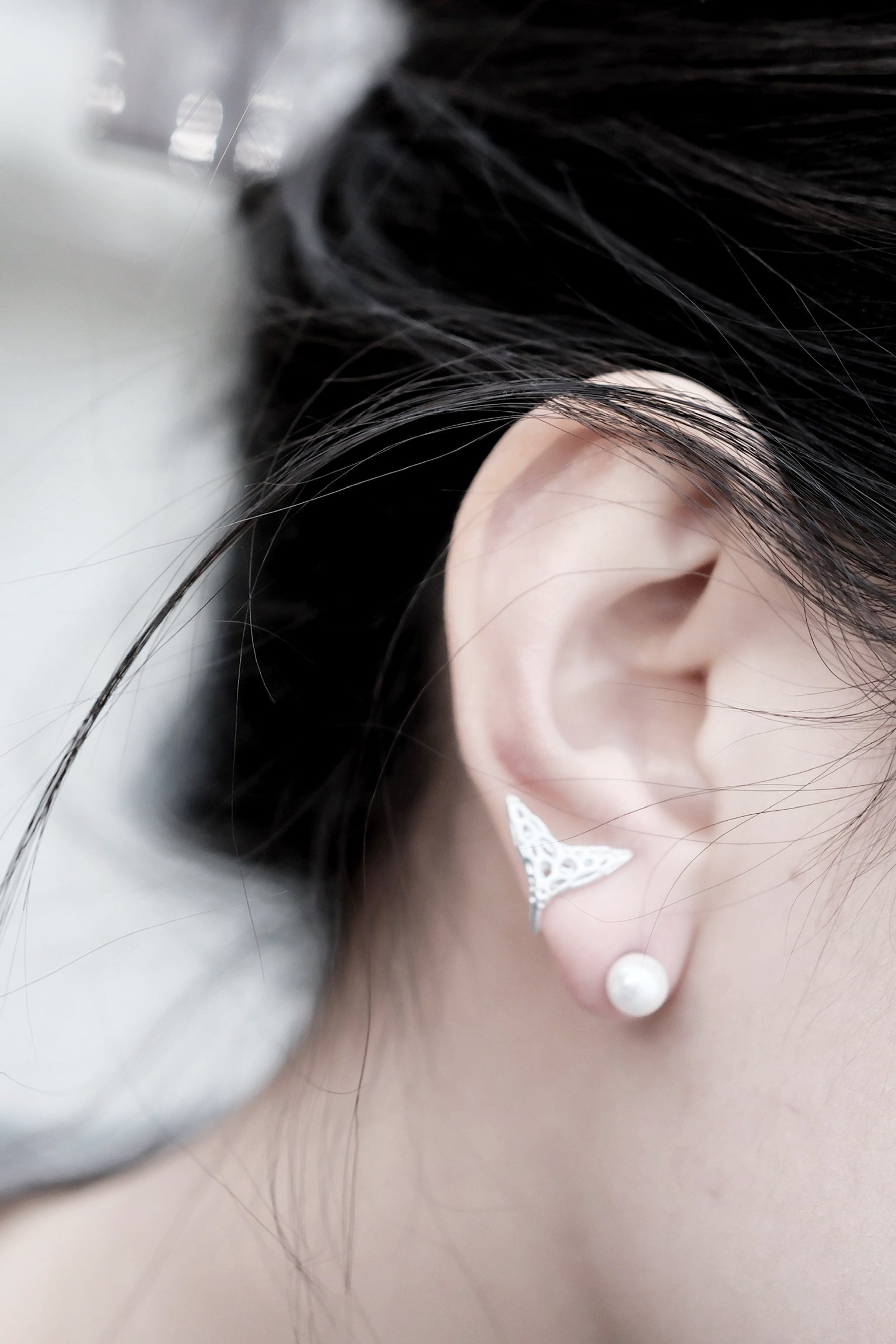 Each earring is adorned with a natural freshwater pearl, symbolizing purity, beauty, and the life that flourishes within the ocean. The life side of the earring embodies the energy and growth of the sea, while the decay side reflects the vulnerability of marine ecosystems, threatened by pollution, climate change, and overfishing. Together, they represent the harmonious yet fragile balance of the ocean and its ecosystems.