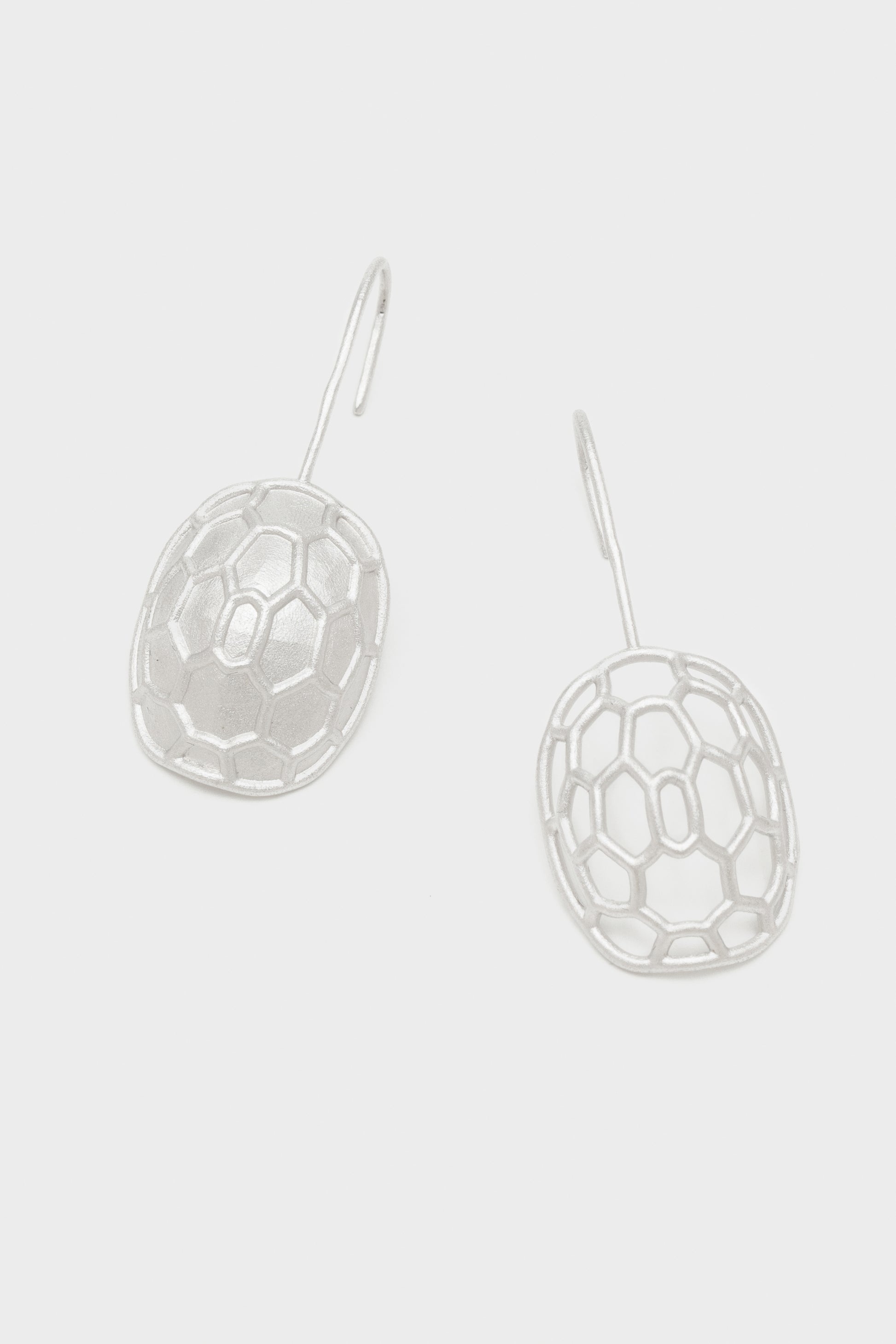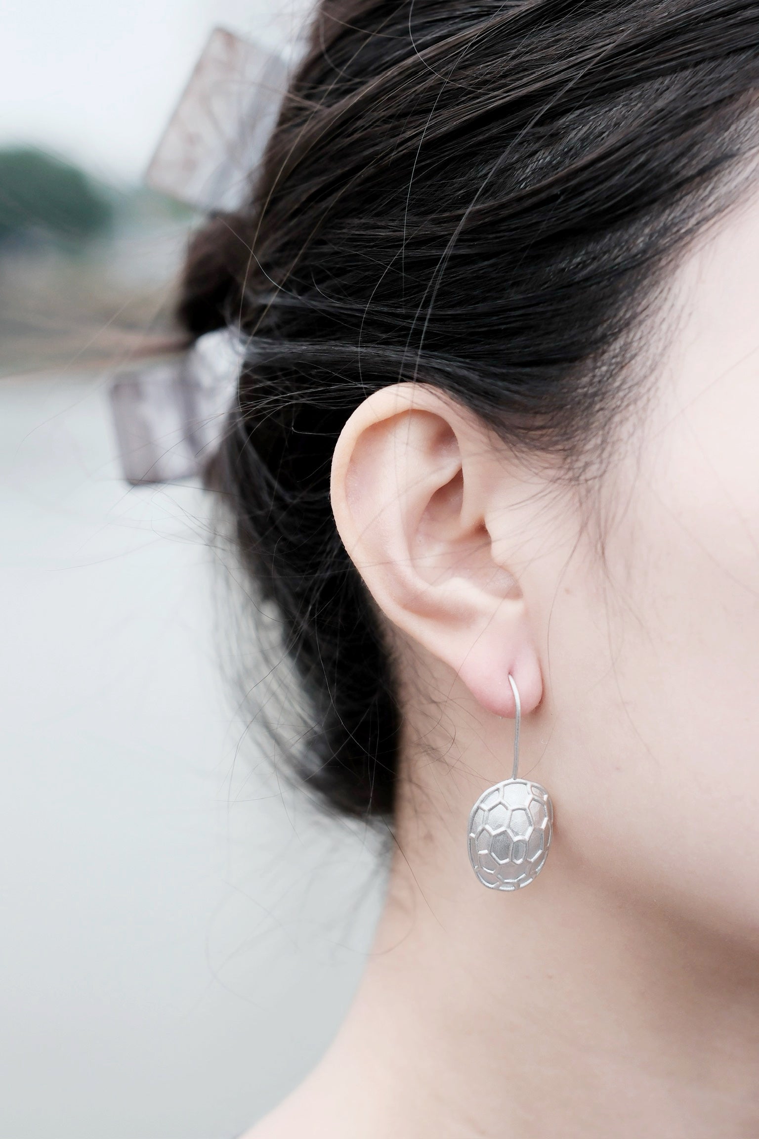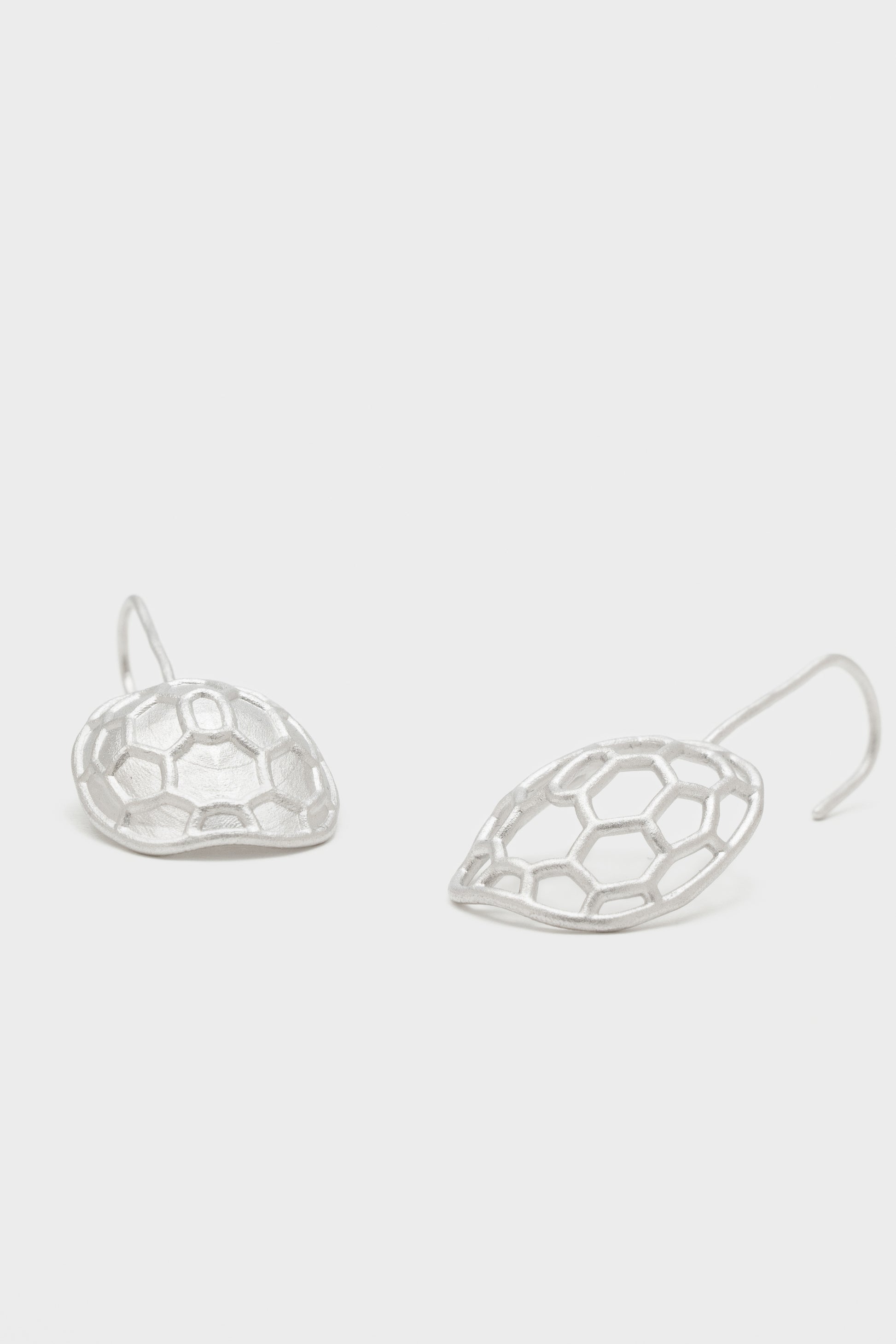 These pendant earrings are inspired by the graceful movement of the hawksbill sea turtle. The design incorporates the turtle's unique rounded lines and patterns, conveying the harmonious beauty of nature. Each pendant seems to tell the story of the turtle's journey, evoking a love and reverence for the ocean.