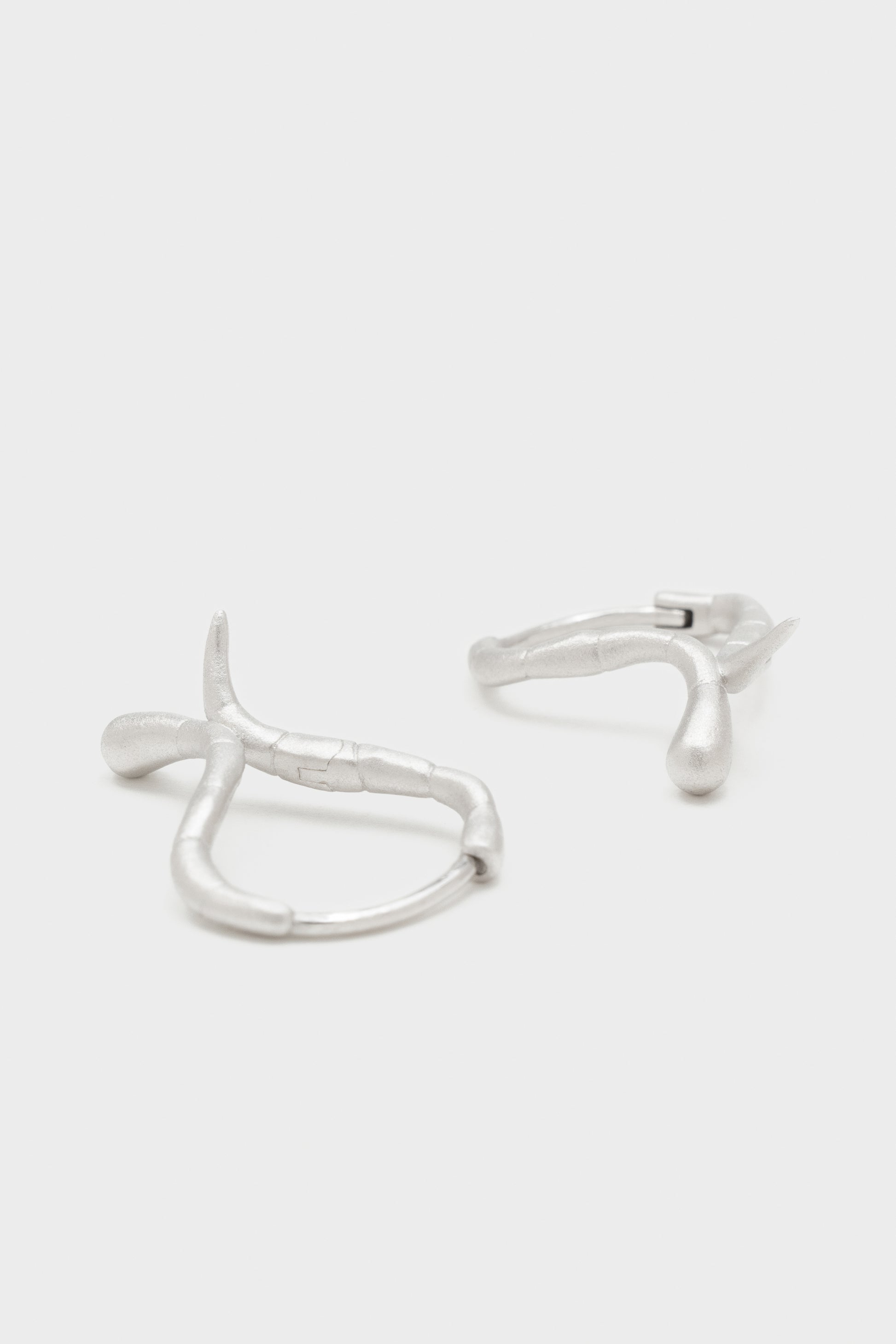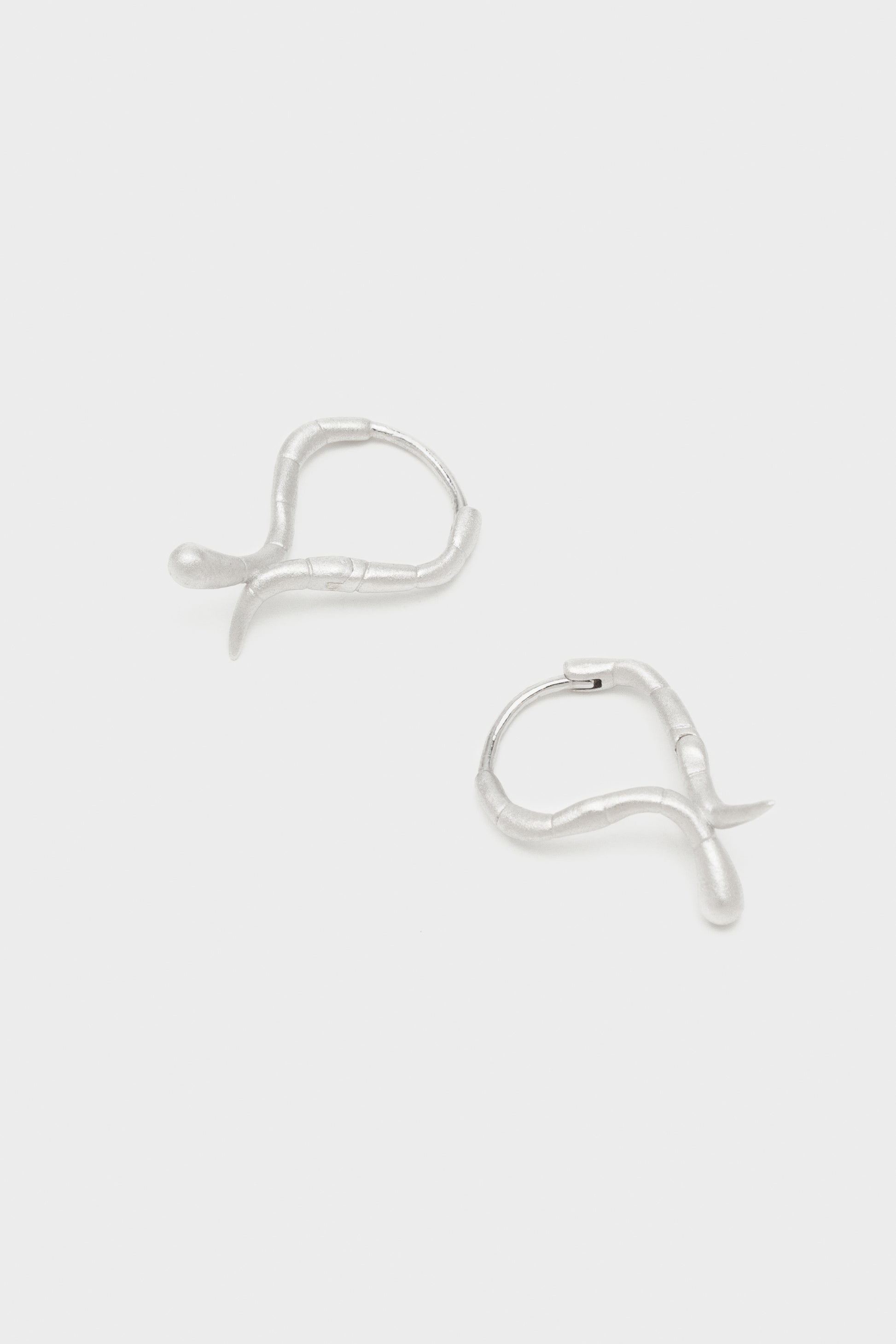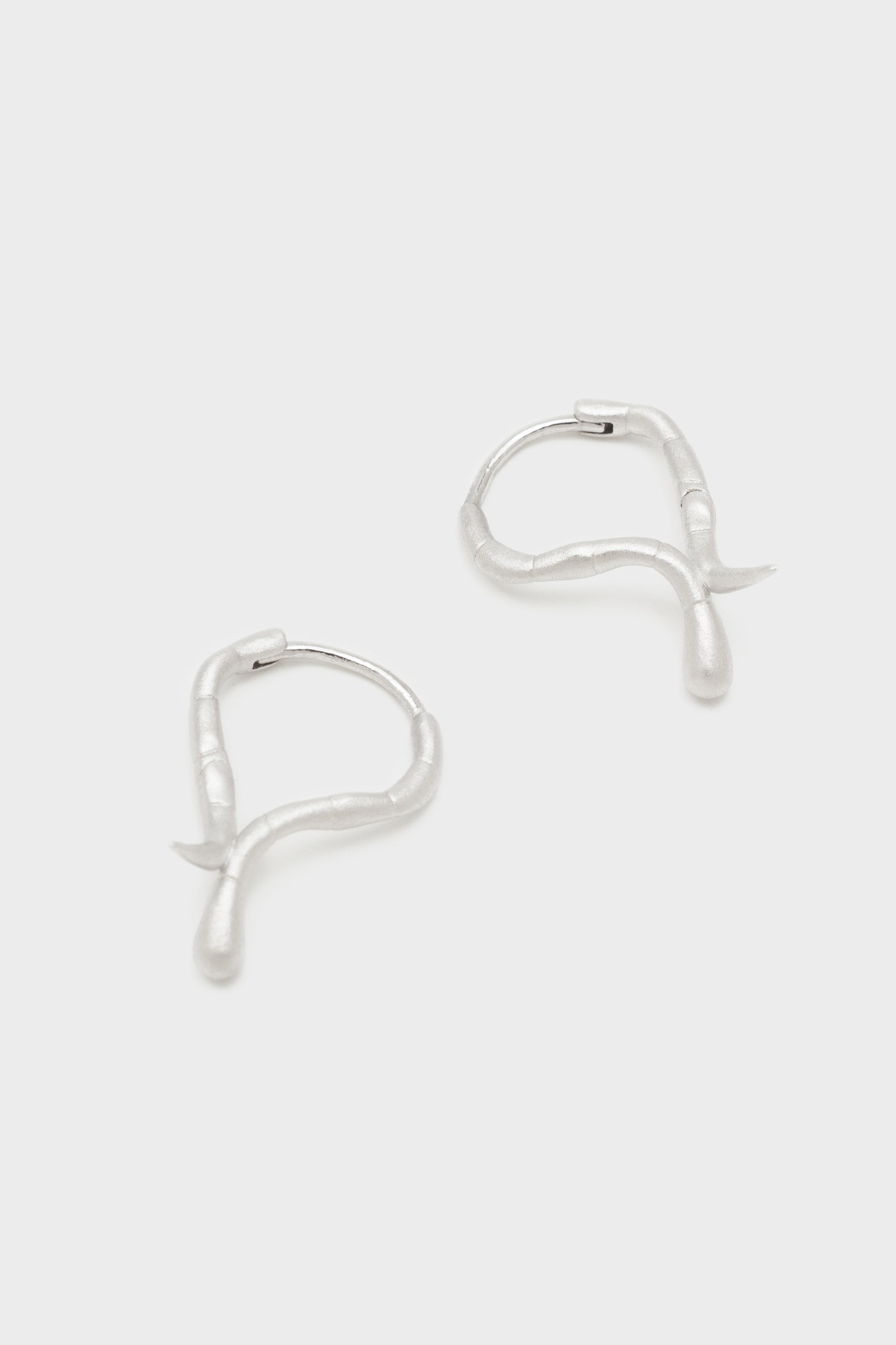 Evoking the sleek elegance of the moray eel, these earrings are expertly crafted from sterling silver plated with 18K white gold, exuding a refined and modern allure. Each pair is carefully handmade by artisans, ensuring a unique touch to every piece. Limited edition.